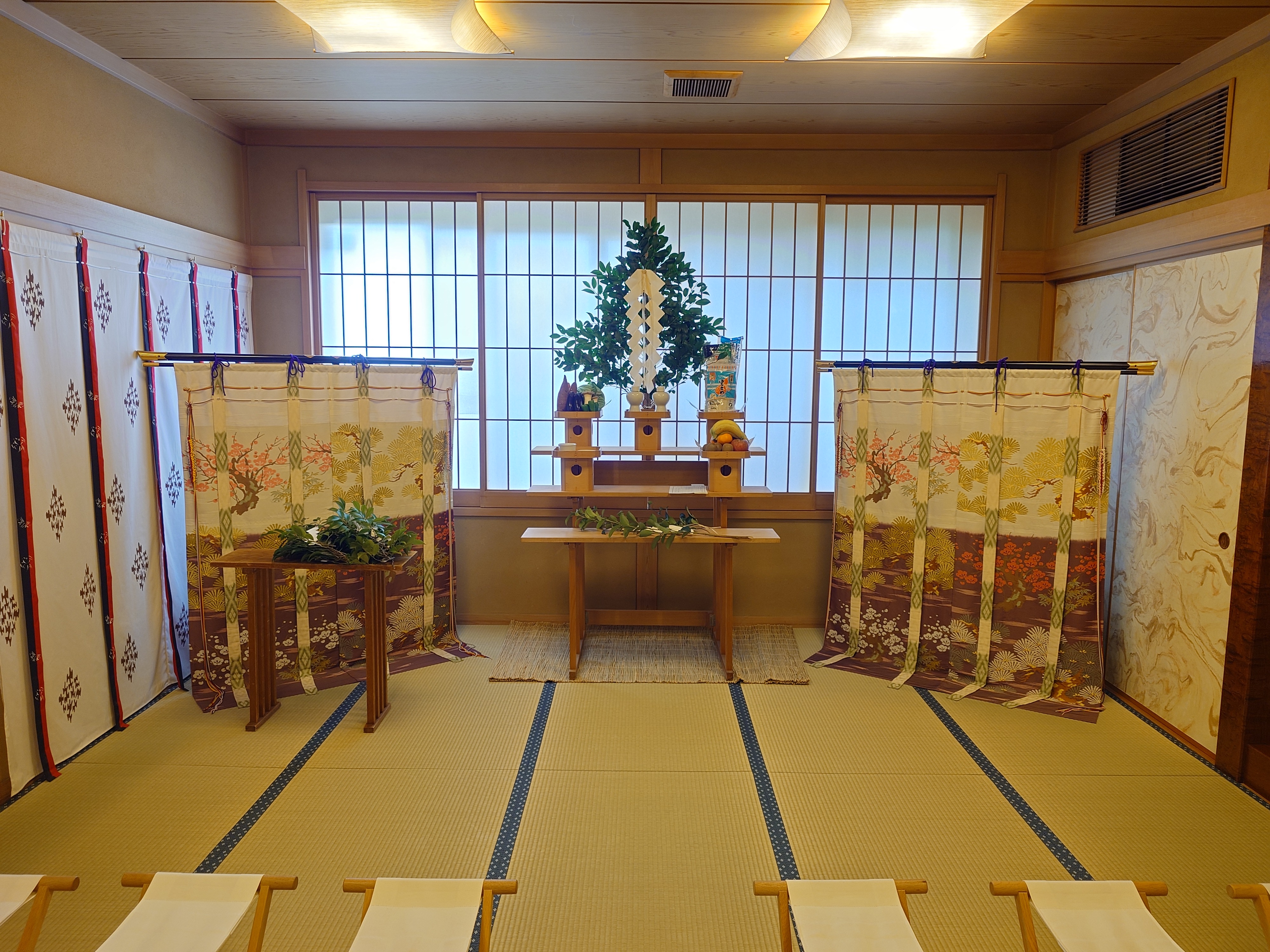 地鎮祭、上棟祭、竣工祭、神棚祓い、住宅清祓い、会社清祓い、店舗開店清祓い、会社工場安全祈願、事故現場清祓い、神式葬儀、式年祭・祖霊祭(神式法要)