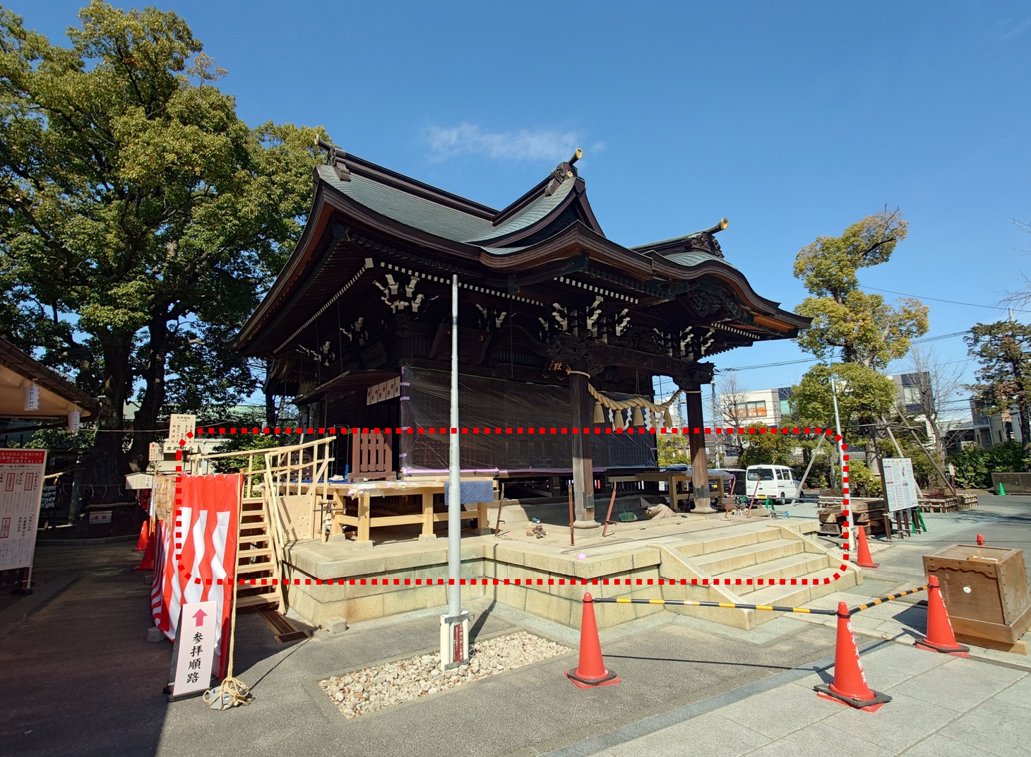 令和8年2月4日より本殿の耐震工事が以下の日程で実施されます。