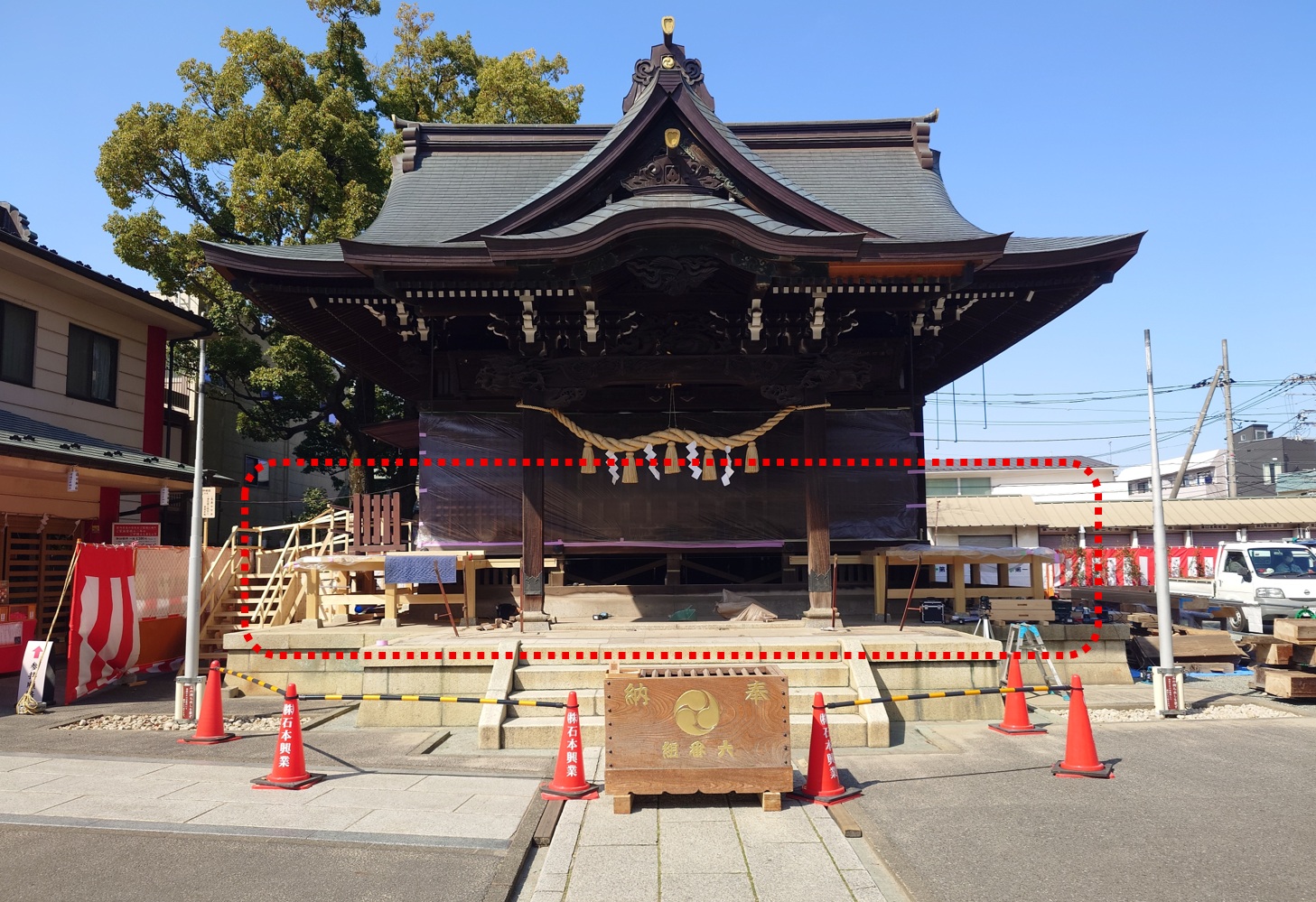 ・本殿内工事中(3月24日より)は、殿内にて神事が行えない場合がございます。別殿でのご案内となりますので、ご了承ください。(日曜祝日を除く)